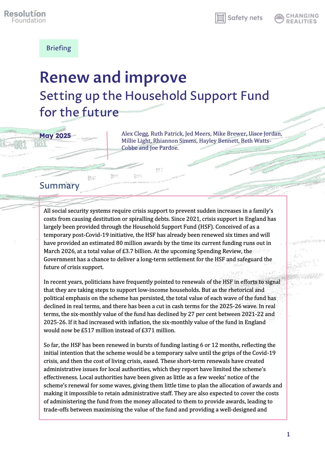 At the upcoming Spending Review, the Government has a chance to deliver a long-term settlement for the Household Support Fund, the largest form of discretionary crisis support in England. Conceived of as a temporary post-Covid initiative, the HSF has already been renewed six times and will have provided an estimated 80 million awards by the time its current funding runs out in March 2026, at a total value of £3.7 billion.